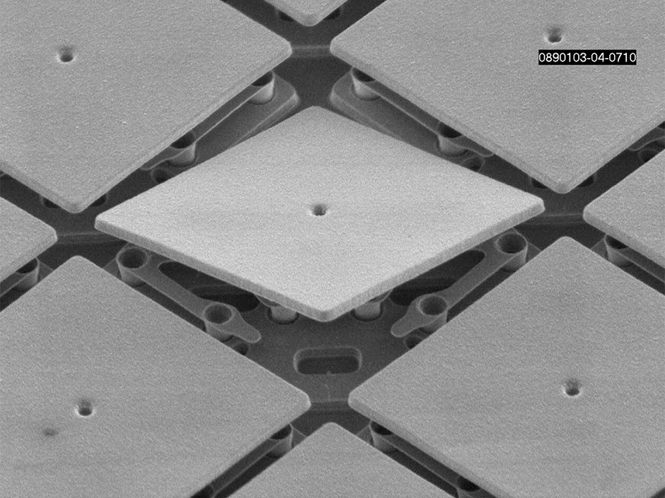 - 第一层是微反射镜单元,处于悬浮状态,形状为正方形,由铝合金制成,在偏转时较为轻便。